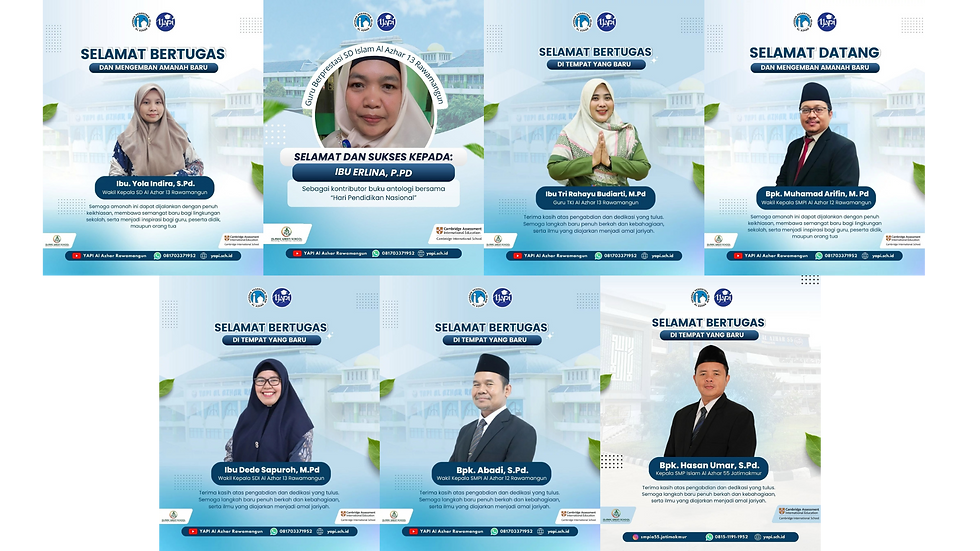 Mari bersama melangkah maju, bersinergi, dan menginspirasi demi kemajuan pendidikan. Semoga pimpinan dan guru yang baru dapat menjalankan amanah dengan penuh tanggung jawab, dan pimpinan serta guru yang lama senantiasa diberikan keberkahan di tempat tugas yang baru. Dengan kerja sama yang solid, insyaAllah Al Azhar dan YAPI akan terus menjadi lembaga pendidikan yang berdaya saing, unggul, serta berperan aktif dalam membentuk generasi bangsa yang cerdas dan berkarakter Islami.